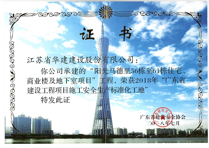 阳光马德里获2018年广东省建设工程项目安全生产生产标准化工地