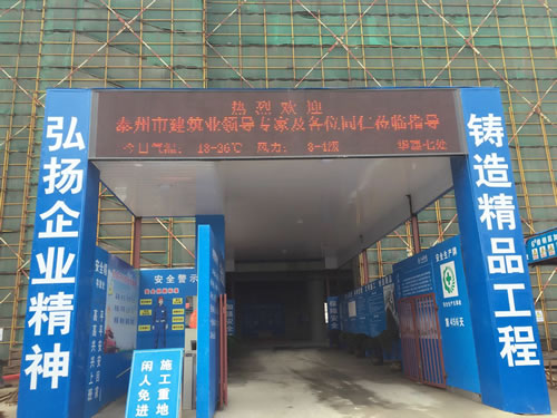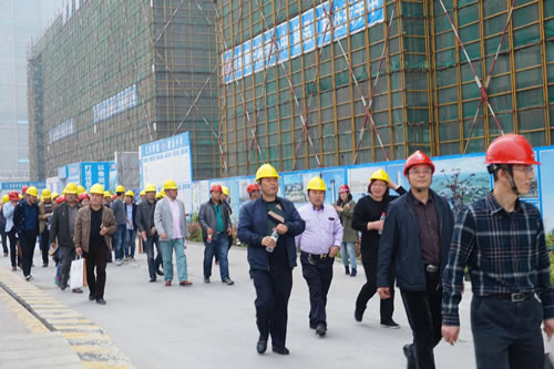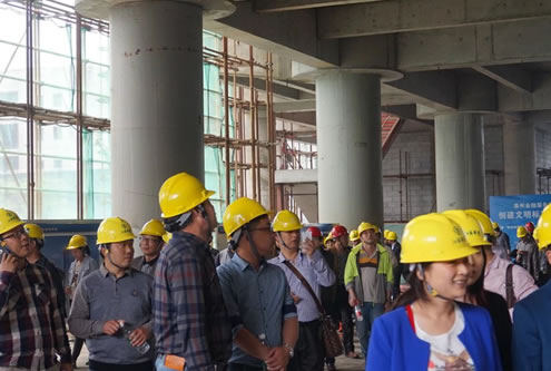 4月21日下午,江苏华建苏北分公司承建的泰州金融服务中心现场,彩旗猎猎,热闹非凡,泰州市创精品工程观摩会隆重举行,泰州市建工局副局长王京陵以及泰州市各市(区)建筑业主管部门工程创优负责人、建筑业协会负责人、全市二级以上资质企业总工程师、技术负责人、创优企业总工程师、项目经理、技术负责人等共计400人参加了观摩活动,与会人员对江苏华建在建设金融服务中心兴业大厦过程中创下了江苏泰州地区多个之最表示了浓厚兴趣,多个之最包括:高度最高(地上58层、设计高度: