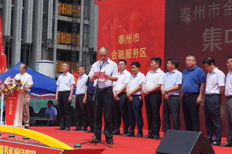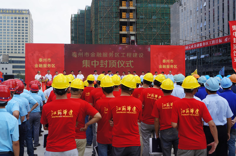 8月8日,泰州市政府在由苏北分公司承建的泰州金融服务区隆重举办封顶仪式。江苏华建副董事长陈荣春作为施工单位代表作发言。