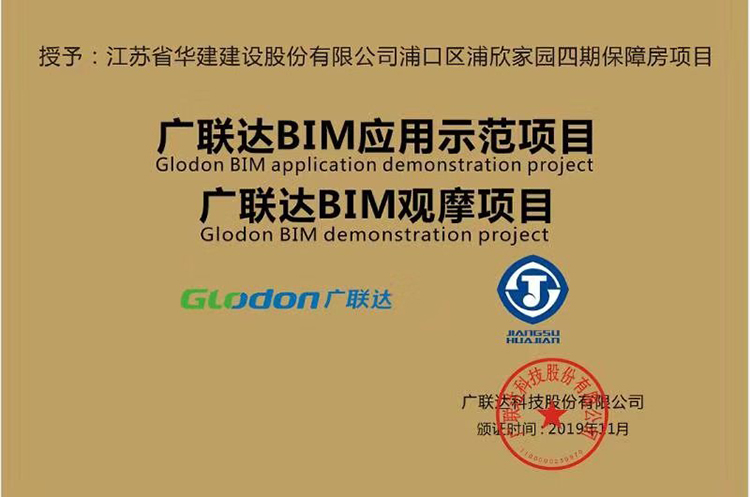 11月10日,公司承建的南京浦欣家园四期保障房项目获“广联达BIM应用示范项目”、“广联达BIM观摩项目”荣誉称号,系江苏华建首个获得该称号的项目。