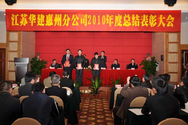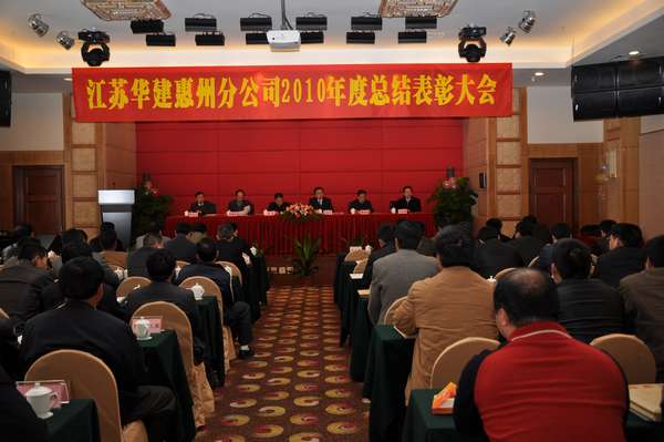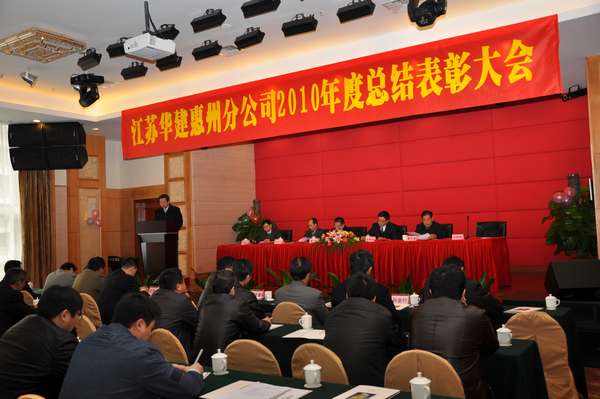大会由惠州公司副总经理严龙山同志主持,惠州公司总经理华恒荣同志在会上作了题为《保稳定促规范,强化管理谋发展;勇开拓重创新,奋勇进取谱新篇》的工作报告。报告对惠州公司2010年各项工作和成果进行了客观、全面、深刻的总结与回顾。报告认为,去年以来,面对深刻变化的国际国内环境,竞争激烈的建筑市场,在公司总部的坚强领导下,惠州公司坚持“保稳定、防风险、创品牌、促发展”的工作方针,全体员工团结一心,克难求进,顺利完成了总部年初下达的任务指标,精神文明建设再结硕果;工程创优技术进步取得新突破;各工程处(项目部)呈现颇多亮点。盘点2010年,是浓墨重彩的一年,更是惠州公司发展史上不平凡的一年,全年着力于“稳”,彰显出“新”,构建 成“和”,在经营开拓、质量安全、风险管控、内部管理等各个方面都取得了实实在在的工作业绩。报告还对工作中存在的问题和困难逐一梳理,并按照江苏华建董事会五届一次、二次会议精神,结合惠州实际,对2011年度工作提出了工作意见,要求惠州公司上下继续发扬“敢拼、敢干、敢冒”的创业精神,努力光大经营特色,继往开来,不断进取,围绕“平稳、规范、创新、拓展”的工作方针开展工作:继续加强经营开拓力度,提高经营实效,确保规模增长;继续加强现场施工管理,提升管理水平,推动创新创优;继续加强风险监管控制,细化财务工作,保持平稳发展;继续加强内部管理规范,探寻共同价值,打造和谐企业。