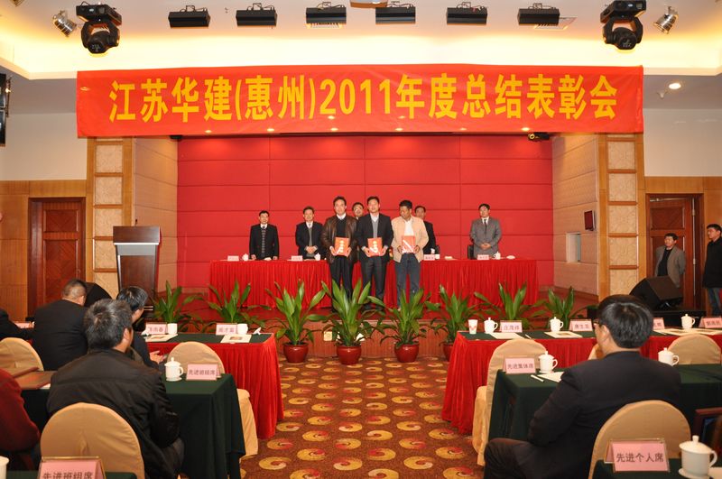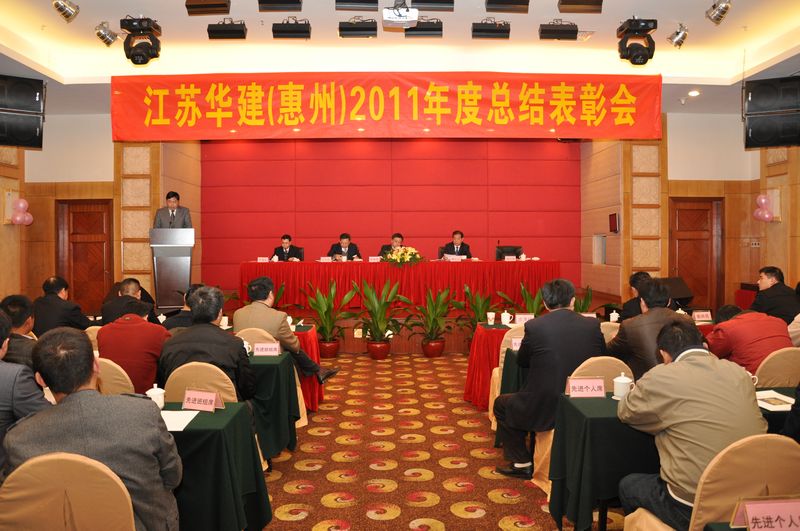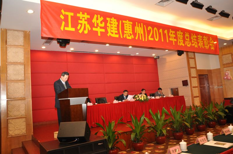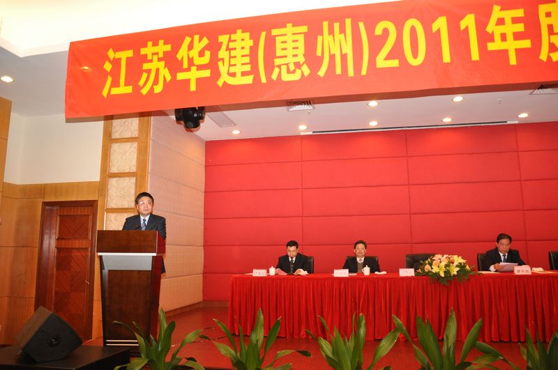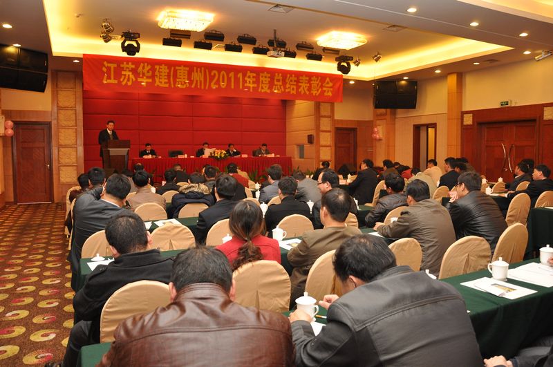 大会由惠州公司副总经理严龙山同志主持,惠州公司总经理华恒荣同志在会上作了题为《保增长重稳定,优化管理促发展;勇创新求拓展,进取思变闯新路》的工作报告。报告对惠州公司2011年各项工作和成果进行了客观、全面、深刻的总结与回顾。报告认为,去年以来,面对深刻变化的国际国内环境,竞争激烈的建筑市场,惠州公司在公司总部的坚强领导下,坚持“平稳、规范、创新、拓展”的工作方针,全体员工团结一心,迎难而上,稳中求进,顺利完成了总部下达的年度任务指标,企业的品牌影响力和社会美誉度得到进一步增强;质量创优上取得历史性突破,东湖花园八号小区喜捧江苏省外优质工程奖“扬子杯”;各工程处(项目部)也呈现颇多亮点。回顾梳理2011年,是充满深刻变化的一年,也是惠州公司发展史上极为不易的一年。一年来,中央政府宏观调控政策对房地产市场形势产生了深远的影响,面对严峻的挑战和巨大的压力,惠州公司上下创新求变,着力转变,主动应变,积极改变,在创新合作模式、规范内部管理、重视工程质量、严格风险防控等方面都取得了实实在在的可喜变化。报告还对工作中存在的问题和困难逐一梳理,并按照江苏华建董事会五届三次、四次会议精神和秦皇岛经营工作会议精神,结合惠州实际,对2012年度工作提出了工作意见,要求惠州公司上下以转型为目的,以创新为手段,不断进取、求新求变,着力实现稳健转变与升级跨越,以“谋划长远发展,创建新型团队;谋划区域布局,创开新兴市场;谋划转型升级,创造发展模式;谋划优质跨越,创新企业管理”为工作思路,敢于走出来,开创新局面,共同构建惠州区域公司架构。
