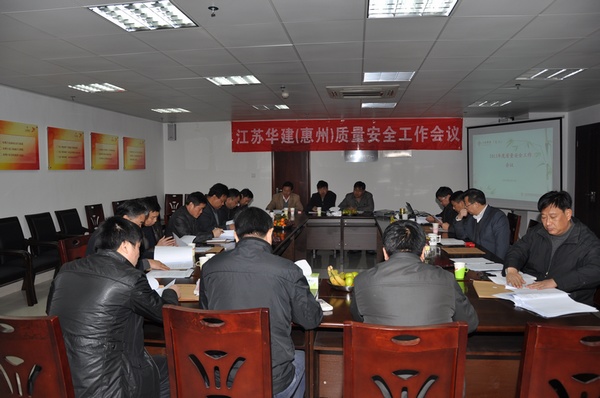 会议最后,惠州公司华恒荣总经理还就年度质安工作提出了具体要求。他强调,质量和安全是建筑企业永恒的主题,是日常的重要工作,希望公司上下牢记江苏华建“铸造精品,追求卓越”的理念,体现出特级资质企业的管理水平,靠项目说话,创品牌,提形象,争市场,求发展。他还指出“管理出效益,细节定成败”。在日常,对质量、安全工作一定要高标准,严要求,要做好细致、踏实的工作,措施落实,管理严谨,体现过人之处,把质量安全工作提升到新的水平。