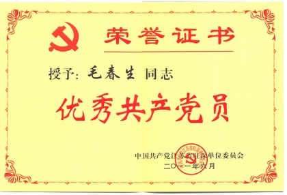 毛春生 时间:2012-04-10 6995 毛春生,高级工程师,现任深圳公司三处二工区副主任。1982年公司创立以来就一直在深圳工作,爱岗敬业,成绩突出,先后荣获“江苏省建筑安全生产先进个人”、“江苏省驻深工委优秀共产党员”等称号。