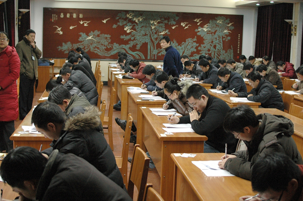 公司公开招聘考试圆满结束 时间:2010-02-10 7203 2月6日至7日,华建公开招聘考试在公司总部举行。本次考试共8个岗位,12个职位,110人报名,由市委组织部、扬州大学联合出题,组织部、人事局、国资委、扬大、公司律师团、公司领导组成面试考评团。最终76人参加考试,41人进入面试。最终聘用结果由公司党委会讨论研究决定。