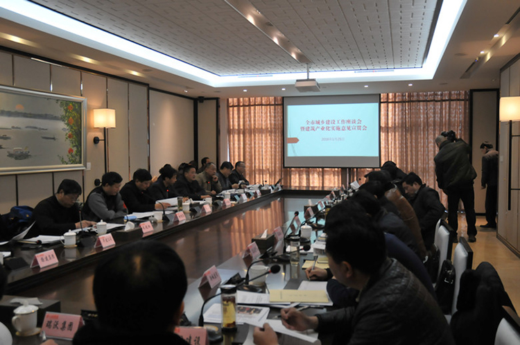1月25日下午,扬州市城乡建设工作座谈会暨建筑产业化实施意见宣贯会在华建企业展示中心召开,扬州市城乡建设局兼建工局局长杨正福主持会议,市城乡建设局徐惟涛、成自勇、朱兆权等领导和各部门负责人,各县(市)区建设局长、建工局长和市部分骨干建筑企业负责人参加会议,建工控股公司兼江苏华建董事长陆金龙应邀参加并在会上介绍了华建近几年来的发展经验。