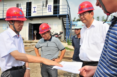 陈扬副市长视察建设大厦工地 时间:2011-08-12 5040 8月12日下午,扬州市政府副市长陈扬、市建设局局长杨正福一行前往江苏华建代建的扬州建设大厦暨规划展览馆、市民中心项目工地现场视察。扬州建工控股公司、江苏华建董事长陆金龙陪同视察,并将工程施工进展情况向陈副市长作了简要汇报。陈副市长对建设大厦总体施工进展表示满意,并提出希望所有参建单位精心组织,科学管理,确保这一政府重点工程建设顺利推进。公司领导程杰等一起陪同视察。