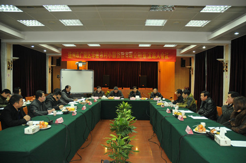 元月13日,扬州市广陵区华建农村小额贷款有限公司(筹)发起人会议在扬州召开。江苏华建董事长陆金龙、监事会主席吴士茂、副总经理程杰、纪委书记钱启明及小贷公司各发起人代表和筹建小组成员参加会议,广陵区财政局副局长丁永荣、市金融办银行与保险处处长沈一进应邀出席会议。程杰副总经理主持会议。