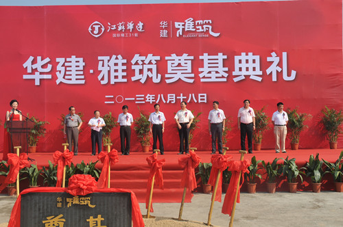 8月18日,由江苏华建与扬建集团、扬安集团、泰兴一建等共同出资开发建设的华建•雅筑项目举行开工典礼,公司领导陆金龙、吴士茂、钱启明、陆俊和部分出资方代表及扬州开发区有关领导出席奠基仪式,副总经理兼总工程师、华建地产董事长程杰主持,陆金龙董事长宣布正式开工。
