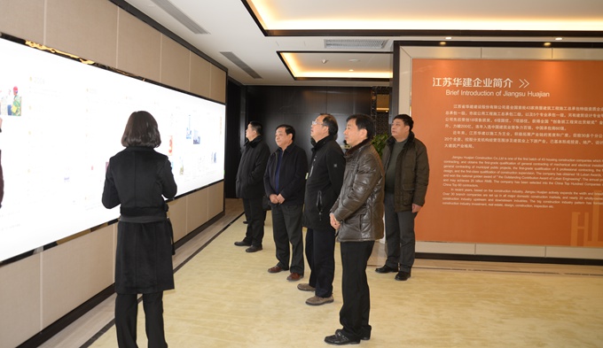 徐厅长一行饶有兴致地参观了华建企业展示厅,对华建近年取得的成就高度评价。在会议室,陆金龙董事长介绍了华建近年来的发展情况,并特别就公司发展转型、分配机制、联盟协作、建筑工业化等方面向省厅领导进行了汇报。省建管局纪迅、成际贵两位副局长对华建近年在改革发展、体制机制创新等方面取得的成绩表示赞赏,认为华建经验值得向全省建筑企业介绍推广。徐厅长对扬州建筑业整体发展进行了概括总结,他认为华建发展模式就是扬州建筑业的典型缩影,华建作为扬州建筑业、江苏建筑业的一面旗帜当之无愧。显著成绩主要表现在五方面:一是人才梯队建设日益完善;二是多元化发展整体格局形成;三是品牌效应不断放大;四是工程任务饱满经营范围广阔;五是发展质态良好潜力无限。近几年在陆金龙董事长的带领下,华建还在资本运作、战略合作等方面创新不断、亮点不断,把工作做到了实处,取得了可喜成就。徐厅长指出,当前,江苏建筑业正处在大浪淘沙的阶段,建筑企业要不断完善现代管理制度、更新现代管理理念、树立现代文化观念,推动企业转型升级,他鼓励华建要保持发展特色,扬长避短,打造“百年老店”,把华建这个扬州品牌、江苏品牌发展成为全国著名品牌。闻道才副市长对徐厅长一行百忙之中来扬调研表示感谢,希望在省厅领导关心下扬州建筑业能进一步发展,扬州建筑企业能够取得长足进步。