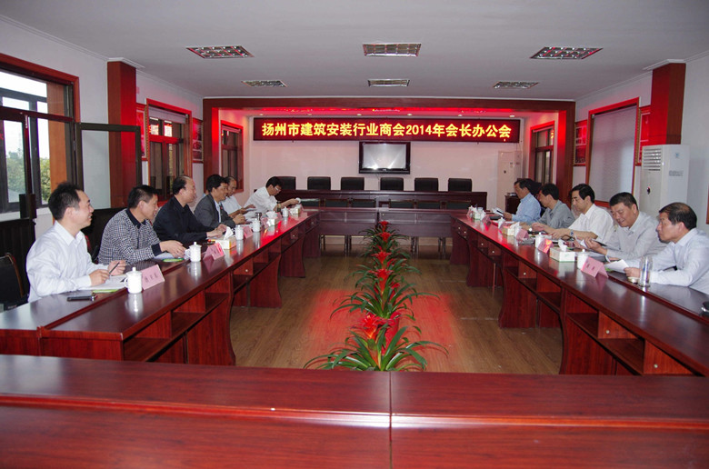 10月10日下午,扬州市建筑安装行业商会2014年会长办公会在江苏仪建集团会议室召开,11家会长和副会长单位的负责人参加会议,陆金龙会长主持会议,市委统战部副部长、市工商联党组书记、常务副主席赵振东出席会议。