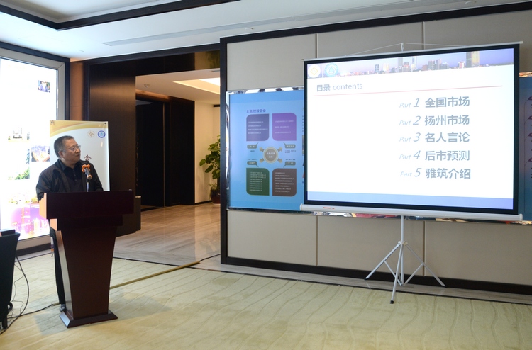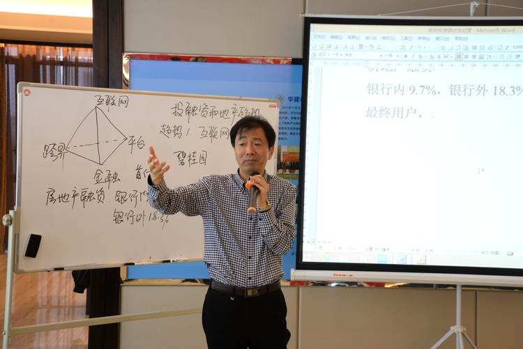 会议由华建地产董事长程杰主持。程总首先从调控政策、楼市供销、土地市场等方面通过详尽的数据向大家作了宏观形势分析,并对后市作了预测,对未来作了展望。地产常务副总徐刚就4个优质地块和1个生态农庄项目向大家作了推介,与会人员兴致盎然,各抒己见,围绕宏观形势对推介项目阐述了自己的观点和想法,他们纷纷表示,此次研讨会搭建了项目交易的平台,集思广益,共谋发展,让大家意识到新形势下只有强强联合,企业才能走得更远。