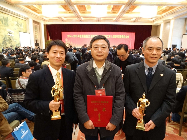 1117日,20142015年度中国建设工程鲁班奖颁奖大会在北京钓鱼台国宾馆举行,会上对20142015年度鲁班奖工程进行了隆重表彰,江苏华建再次书写扬州建筑业的传奇故事:近四年来,为扬城捧回五尊鲁班奖;本次表彰又在同一评奖年度有两项工程载入中国建设工程质量最高奖的史册,江苏华建累计获得中国建设工程界的“奥斯卡”——鲁班奖已达21项,为扬州建筑之乡再扬美名,也为“建筑神兵”的美誉再添新绩。公司副董事长、副总经理陈荣春代表公司上台领奖,公司副董事长、总经理宗有农在大会现场接受了扬州电视台、扬州日报记者专访。