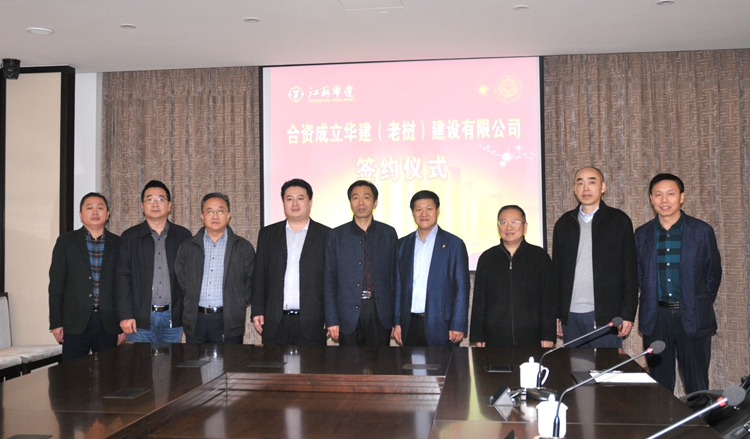 11月23日上午,公司董事长陆金龙与老挝吉达蓬集团董事长姚宾就成立华建(老挝)建设有限公司签订合资协议书。吉达蓬集团副总经理吴兴华、公司领导程杰、陆俊以及相关合作方负责人参加活动。