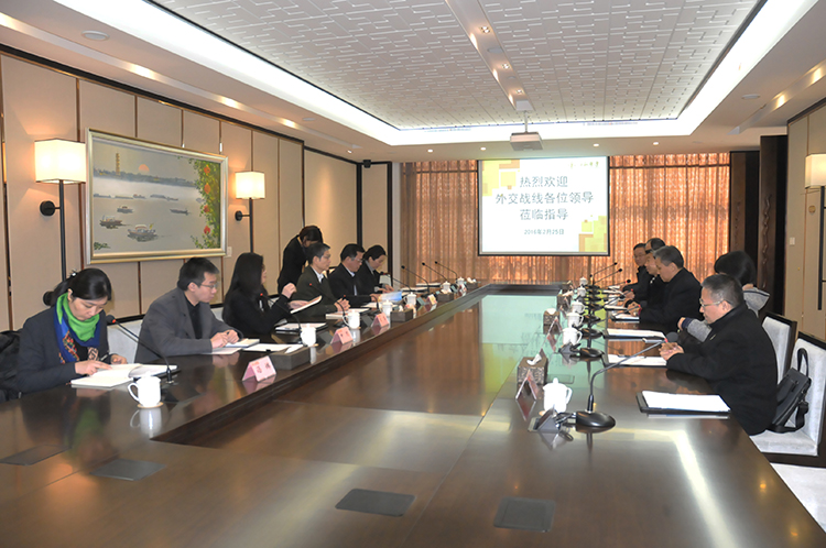 2月25日上午,国家外交部外事管理司廖力强司长、中央外办外管局宋军处长等一行5人,在省外办副主任张松平、扬州市副市长汪志坚、市外办副主任徐静等陪同下,到江苏华建开展外事工作服务企业发展专题调研,公司领导陆金龙、陈荣春、程杰、陆俊等一同接待。