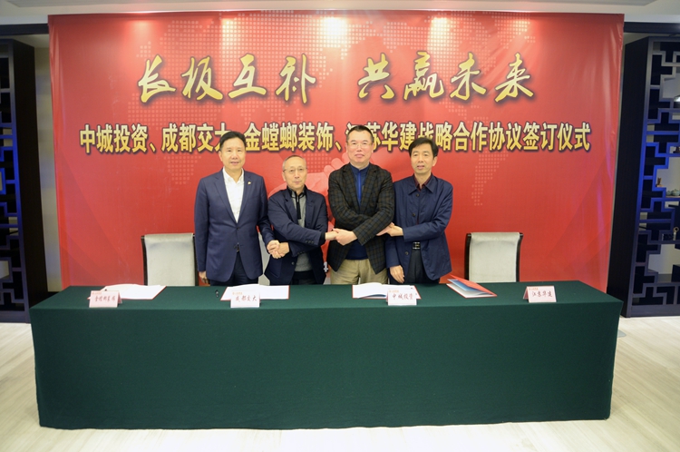 中城投资是国内领先的专业化房地产私募投资管理机构;金螳螂是中国装饰装潢施工领域领军企业和首家上市公司;成都交大地产是在科技住宅领域占有领先地位的专业住宅开发商。此次签约将房地产上下游产业的四家单位融为一体,将充分发挥各自专业领域业务优势,整合资源,长板互补,以项目为依托,在一二线城市以住宅、写字楼和酒店式公寓为主进行全方位项目开发和建设,并逐步形成由项目投资向企业投资转化的良好生态。正如中城联盟前轮值主席、成都交大董事长孟刚所说,此次四家合作具有示范意义,这种模式在联盟内值得推广。在华建企业展示中心,四家领导交流管理心得,畅谈行业发展,共商联合之势。座谈会后,四家大佬共同签署了战略合作协议书。