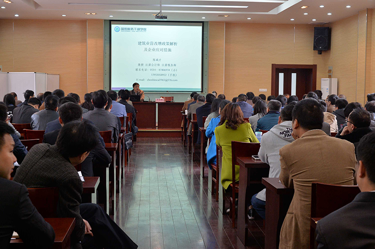 公司开展营改增试点业务培训 时间:2016-04-11 3591 4月5日和6日,公司财务部和华建学院联合组织的营改增试点业务培训分别在扬州和北京开班。公司总部、北京和上海区域公司、驻扬分支机构及公司联盟企业的主要负责人、经营和财务工作分管领导及有关人员共计210余人参加了培训。 此次培训特邀市国家税务学院陈斌才教授主讲。陈教授就建筑业营改增政策及企业应对措施作了专业分析和讲解,并与参培人员进行了互动交流,使参培人员对建筑业营改增有关政策有了更深刻的理解和认识,达到了预期效果。 按照培训工作计划,本月中旬还将在深圳和海南两地组织区域公司有关人员培训。