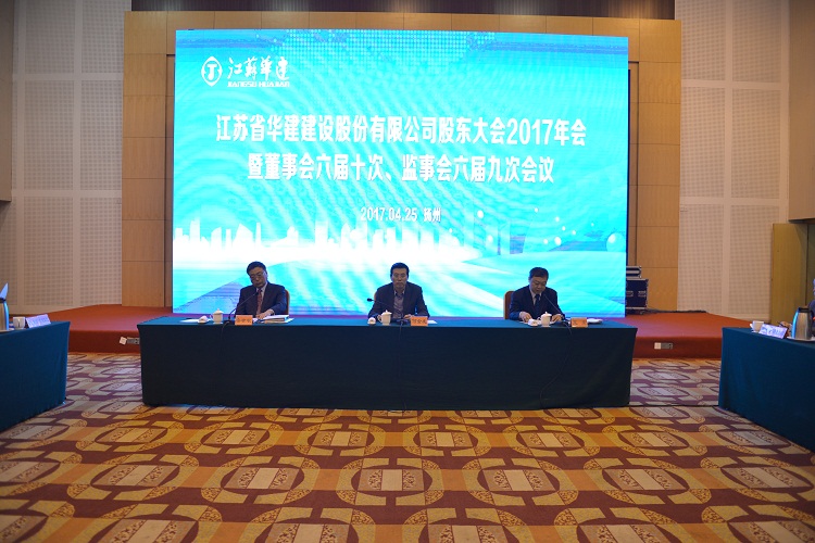 425日上午,江苏华建股东大会2017年会在扬州召开。各股东代表和公司董事、监事出席会议,公司高级管理人员、各分支机构和总部各部室负责人、律师团律师列席会议,王宏董事长主持会议,扬州市副市长何金发出席会议并致辞。