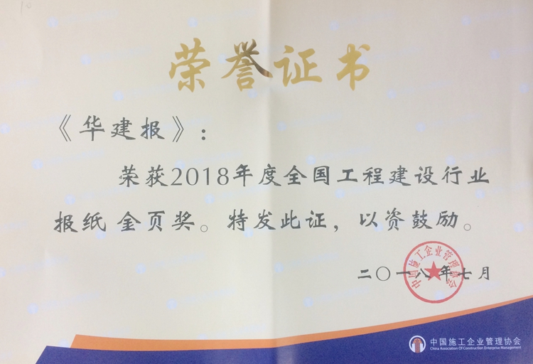 《华建报》再获“全国工程建设行业报纸金页奖” 时间:2018-07-23 4792 7月18日至20日,中国施工企业管理协会2018年度工程建设企业文化论坛暨通联员工作会议在苏州召开。公司内刊《华建报》再度获评“2018年度全国工程建设行业报纸金页奖”,公司翟法宝获评“2018年度中国施工企业管理协会优秀联络员”。