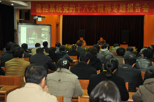 11月23日下午,建控系统党委举行学习贯彻党的十八 大精神专题报告会,邀请扬州市委宣传部副部长、市委讲师团团长夏洪春解读十八 大报告的重点内容,建控公司、华建公司机关以及系统各直属单位负责人60多人现场聆听了报告会,华建各区域公司机关近200人通过远程视频同步收看了报告会。