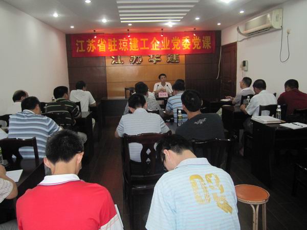 9月14日,江苏驻琼建工企业党委邀请海南省直机关工委组织部长谢卫国给江苏华建海南分公司党员、预备党员、入党积极分子等30余人上了一堂题为《在新形势下加强党组织建设》的专题党课,谢部长从认清形势、明确任务、切实增强责任意识,统筹兼顾、党政结合、正确处理好党政关系,严格要求、率先垂范、充分发挥表率作用,围绕中心、创新载体、不断激发工作活力等四个方面作了辅导。通过此次党课教育,大家深受启发,心灵得到了一次洗礼和升华,决心脚踏实地,做好本职工作,尽心尽责,以实际行动迎接党的十八大顺利召开。江苏驻琼建工企业党委书记王宏出席并主持了党课。