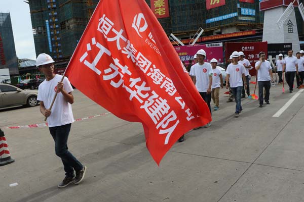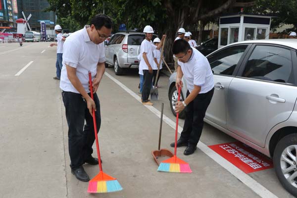 江苏华建积极响应海口市“双创”活动 时间:2015-09-01 2661 8月29日上午,海口市龙华区“双创”启动大会在我公司承建的恒大外滩中心项目现场召开,龙华区区委书记王东等领导出席启动仪式,公司副总、海南分公司总经理王宏到会并做表态发言。 随后,会场举办“我爱海口,力争双创”授旗仪式,并组织志愿者“自扫门前雪”,手拿扫把、簸箕等工具,将所属卫生辖区打扫得干干净净,以实际行动来践行“双创”工作。