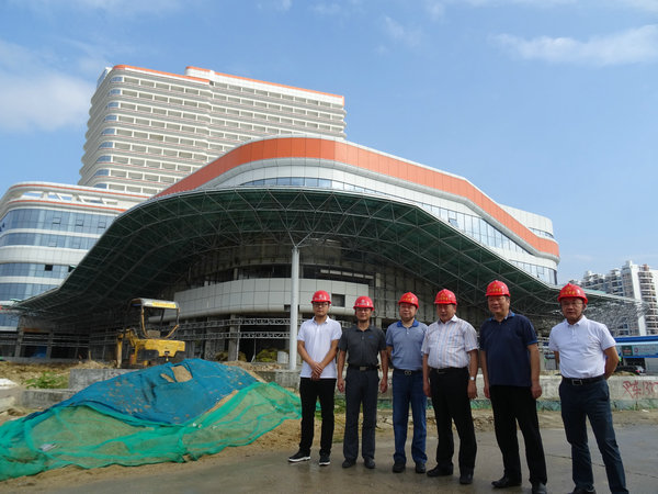 在公司承建的三亚妇幼保健院和华盛中央公园施工现场,王庆山主任与项目管理人员一一握手,向大家表示亲切问候。在陪同人员引导下,他饶有兴致地边走边看,听取项目负责人对工程特点、工程进展、工程用材等方面的情况汇报,不时点头称赞施工人员的工艺水平和施工技艺,并与项目部主要管理班子亲切合影。