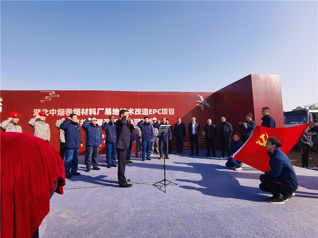 为深化党建工作内涵,发挥所有参建单位党员在工程建设中协作共建作用,推动三方合作迈上新台阶,开工仪式上,湖北中烟材料厂技改支部、中机六院第一党支部和江苏华建湖北分公司党支部共同举行了党支部结对共建活动,重温了入党誓词,推动三方共同打造党建合作品牌,为项目建设奠定了政治基础和组织保障。