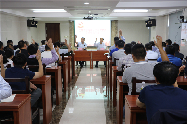 党员大会上,海南分公司党总支书记陆俊代表海南分公司党总支委员会向大会作了题为“围绕经济抓党建、抓好党建促经济”的工作报告。报告从牢固树立政治意识,切实加强党员学习教育;大力加强组织建设,切实发挥党组织战斗堡垒作用;持续开展党风廉政建设,自觉践行中央八项规定;深入开展党群共建活动,凝心聚力促进公司稳定发展四个方面,回顾了自2016年12月8日换届以来,海南分公司党总支在江苏驻琼建工企业党委和公司总部党委的正确领导下,紧紧围绕“服务经济发展、促进和谐稳定”的主线,认真学习贯彻党的十八大以来党中央的新思想、新观点、新部署和习近平总书记系列重要讲话精神,以开展“创先争优”、“两学一做”和“不忘初心,牢记使命”主题教育等活动为载体,不断加强党的思想、组织、作风和制度建设,为江苏华建海南分公司做强做优做大,实现公司健康稳定发展提供了坚强的思想、政治和组织保证。
