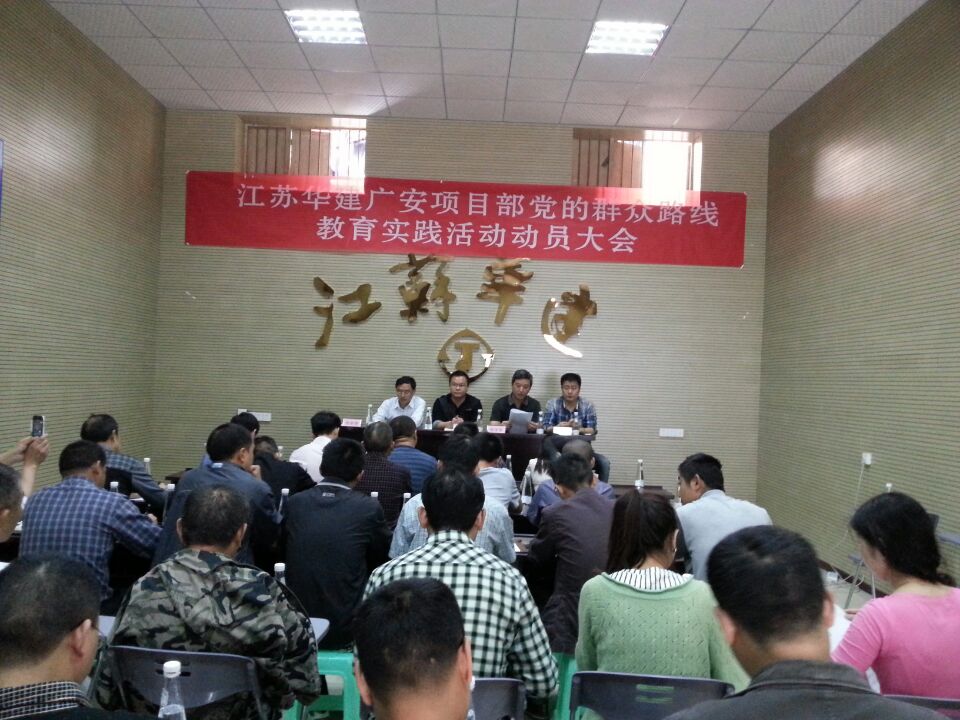 广安官盛新区建设项目部党小组召开党的群众路线教育实践活动动员大会 时间:2014-04-17 4812 2014年4月16日,江苏华建四川广安官盛新区基础设施暨美好家园建设项目部党小组召开党的群众路线教育实践活动动员大会。项目部所有党员及各重要岗位管理人员共40余人参加会议。会议由珠海区域公司副总经理严正涛主持。珠海区域公司副总经理、总工程师周学军在会上传达了上级党委关于深入开展党的群众路线教育实践活动的实施方案和总的要求。珠海区域公司办公室相关人员向与会者详细介绍了本次活动所着力反对的“四风”的主要表现形式。官盛镇党委副书记马江林参加会议,并对党小组相关活动的开展提出了具体要求和指导意见。