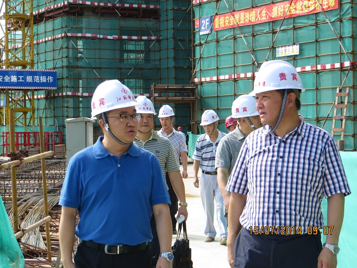 7月14日-16日,江苏华建副总经理陆俊、顾问总工朱学农、工程管理部经理丁华等一行来珠开展夏季安全生产大检查暨2014年质量/环境/职业健康安全管理体系内审,珠海区域公司总经理缪国枢、副总经理卢达、副总经理兼总工程师周学军以及技术质量处、安全设备部等职能部门负责同志陪同参加相关活动。