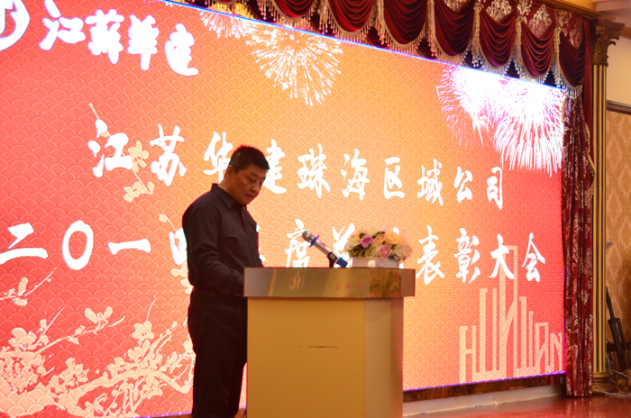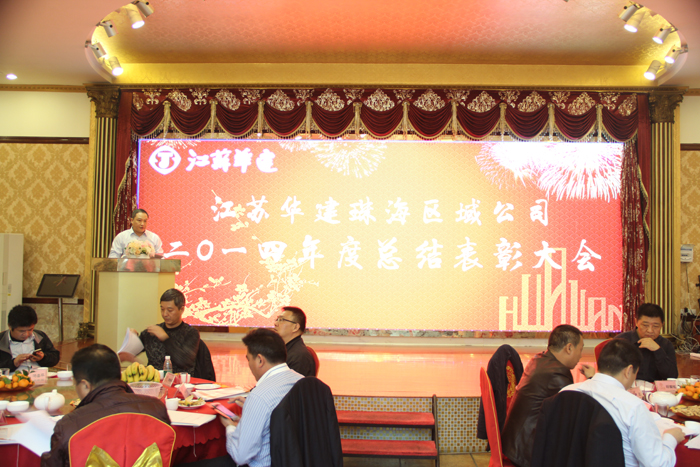 1月24日下午,江苏华建珠海区域公司召开2014年度总结表彰大会。公司领导缪国枢、卢达、严正涛、周学军、冯喜平和机关全体人员、各工程处主任、直管项目部经理、2014年度先进个人、先进集体代表及各项目部管理人员共100余人参加了表彰大会。会议由珠海区域公司副总经理卢达主持。江苏华建副总经理、珠海区域公司总经理缪国枢代表公司经营层作了题为《开疆辟土,拓展经营领域多元化;规范管理,促进质量效益齐提升》的工作报告,全面梳理总结公司2014年度各项工作,并对2015年的工作作了具体部署,确定2015年为珠海区域公司的“效益提升年”,要求各单位以“提升效益”为中心目标,夯实管理基础,规范管理行为,创新管理模式,提升管理效率,促进安全生产,提高工程质量,树立企业形象,以切实的管理措施促进企业效益的全面提升。