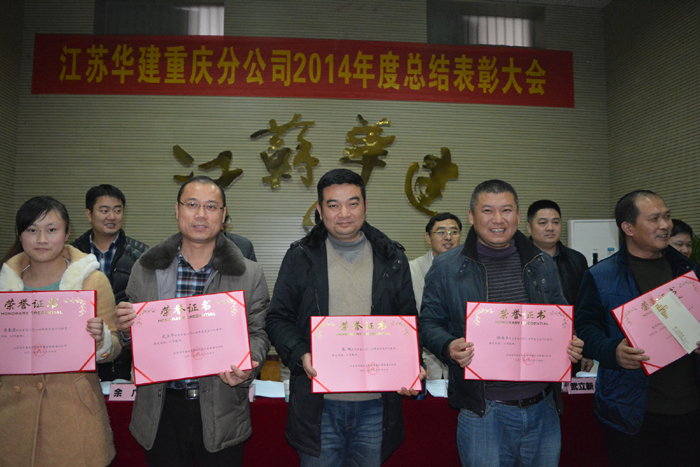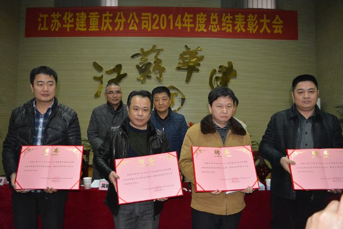 1月25日下午4点,重庆分公司在广安官盛新区基础设施暨美好家园建设项目指挥部一楼会议室召开了2014年度总结表彰大会。缪国枢总经理主持会议,副总经理严正涛作重庆公司2014年度工作报告并宣读了2015年度生产经营工作计划,一处主任吴长生宣读了《关于表彰2014年度先进个人和先进集体的决定》。会上,缪国枢总经理代表珠海区域公司正式聘任余广同志为广安官盛新区建设项目副总指挥,聘任武立新、施宏、林刚等3位同志为广安官盛新区建设项目副总工程师,并与各工程处、直管项目部负责人签订了《质量/安全目标责任书》,明确各单位目标和责任,要求各单位努力践行“铸造精品,追求卓越”的企业质量观,守护员工的生命安全,为企业品牌建设贡献力量。