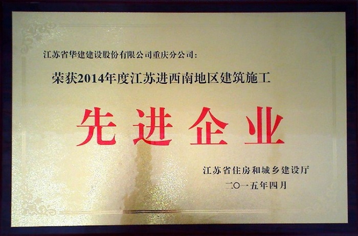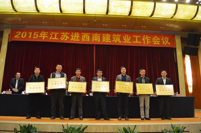 4月9日,2015年江苏进西南建筑业工作会议在重庆召开,江苏省住建厅建管局、重庆市建委有关领导出席会议。会议听取了省厅驻西南办事处2014年工作报告,同时对过去一年业绩突出、表现优异的一批企业和个人进行了表彰。江苏华建重庆分公司荣获“2014年度江苏进西南地区建筑施工先进企业”称号,重庆分公司副总经理严正涛、二处主任余广分别被表彰为2014年度江苏出省施工优秀企业经理和先进个人,严正涛、黄桥获评“优秀党务工作者”。重庆分公司总会计师张胜济代表公司在会上作了“适应新常态,打造在渝发展新模式”的交流发言。