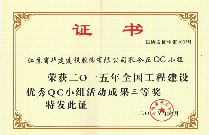6月23—25日,由中国建筑业协会举办的“2015年全国工程建设优秀QC小组活动成果交流会”在云南昆明举行。珠海区域公司“众博·官方版网站登录入口孔令正QC小组” 经江苏省建筑行业协会推荐参加交流会,其成果《剥蚀丘陵地貌多形截面钢筋混凝土灌注桩施工新方法》荣获中建协QC成果三等奖。中国建筑业协会QC成果奖是建筑领域QC成果最高奖项,该奖项的获得是对公司在技术质量管理工作方面的充分肯定。此外根据该项成果编写的工法还获得2014年度江苏省省级工法。