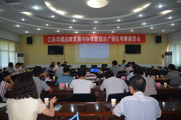会前,考察团观看了广安区宣传片和官盛新区概念规划设计宣传片,对广安区现状及其未来发展前景有了初步了解。随后,吴荣胜区长从投资条件、区位优势以及政策支持等方面推介了广安,表达了通过华建联盟这个平台架设起与联盟企业开展深度合作的桥梁的愿望。文建平书记从华建参与建设的官盛新区谈起,高度评价双方的合作,希望有更多的联盟企业来广安投资,在都市产业、旅游地产以及工业等方面有更深的合作交流。吴主席简单介绍了华建联盟有关情况,他对文书记、吴区长支持和肯定华建广安项目建设工作表示感谢,认为这增强了双方进一步合作的信心和决心,希望发挥联盟优势寻求更多的合作空间,尽快找到双方合作的方向,托起共同的事业。