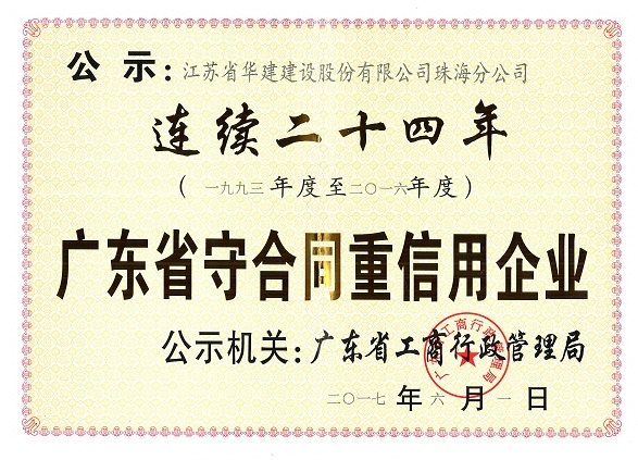 公司连续二十四年被广东省工商行政管理局表彰为“守合同重信用企业”