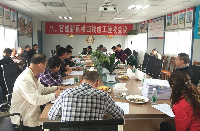 广安项目横四线通过竣工验收 时间:2016-04-09 3040 4月8日下午,广安项目横四线竣工验收会议在项目现场会议室召开,广安区住建局副局长周春兰主持会议。经项目监理、设计、区质监、交通等多个单位及业主现场代表实测检查、总结汇报后,一致同意工程验收合格。横四线作为一个单位工程,是官盛新区“三纵四横”七条次干道之一,道路全长1.01km,路幅宽度25m,双向四车道,全线均为路基形式。
