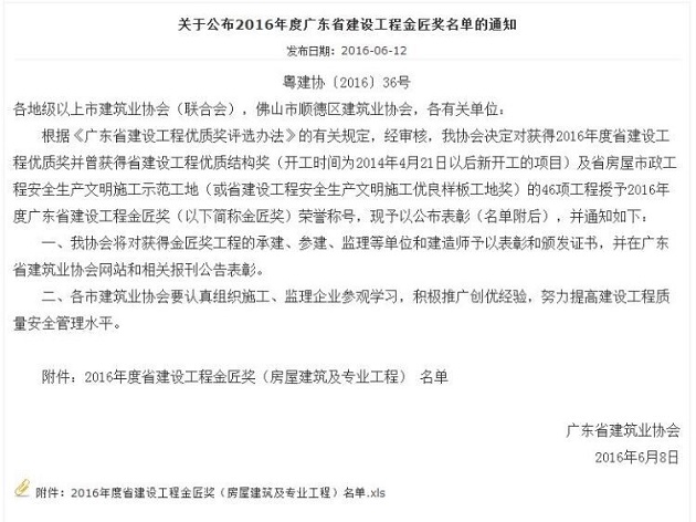 公司“阳光马德里花园二期53-55栋”项目喜获“广东省建设工程金匠奖”