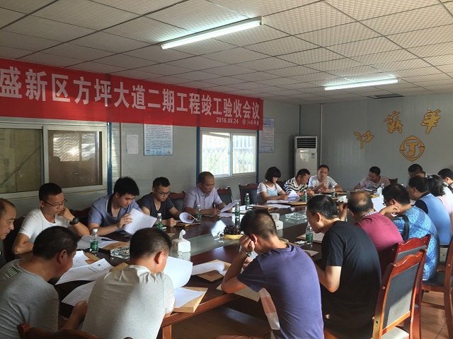 广安项目方坪大道二期顺利竣工验收 时间:2016-08-26 4234 8月24日上午,广安项目方坪大道二期顺利竣工验收,广安区住建局副局长周春兰主持验收会议。本工程是官盛新区又一条东西向城市主干道,西接顺于方坪大道一期交叉口,道路全长1.4km,标准路幅宽度40米,双向六车道,设计时速60km。