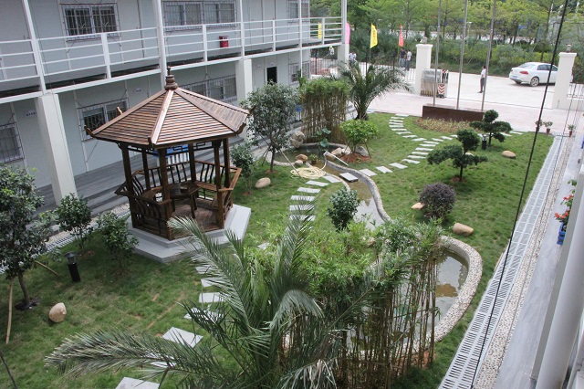 第五项目部负责人陈建表示,在该项目进场之初,就秉承“绿色、环保、节能”的理念,项目部园林景观的打造全部采用可回收、循环利用的材料。花盆采用废模板制成,水池循环供水,生活区照明全部采用节能灯,淋浴设施采用空气能热水器,空调采用节能产品;并将具有扬州特色的园林景观融入其中,进行精心布局、合理规划,将其打造成为工地上的微缩版扬州园林,不仅展示出扬州建筑企业对外的良好形象,更为员工营造一个温馨舒适的绿色家园。