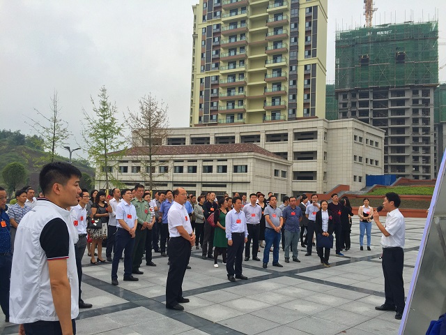 广安区党代会代表团参观广安项目 时间:2016-09-27 3807 9月26日,中共广安区第五次代表大会召开之际,广安区委书记文建平、副书记吴荣胜率与会代表共计超过400人参观官盛新区。代表团一行沿新区已建成主次干道行进,并在官盛湖大坝和官盛春天美好家园建设现场下车驻停,广安区委常委李常兵从项目规划缘由、项目建设进展及社会影响和效益等方面对两个项目做了详细解说。