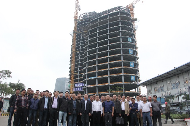 当天上午,陆总一行考察了公司在建的华策国际大厦项目,在项目部会议室听取了该工程的项目概况和施工难点介绍,并到现场参观工地。