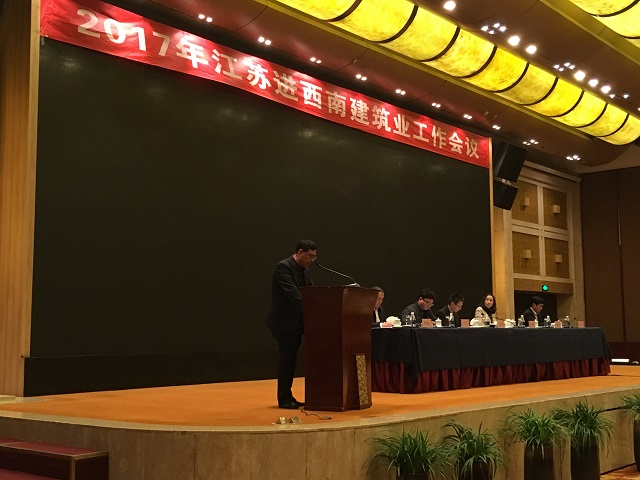 3月24日下午,江苏省住房和城乡建设厅驻西南办事处组织召开2017年江苏进西南建筑业工作会议,珠海区域公司副总经理、重庆分公司总经理严正涛参加会议。