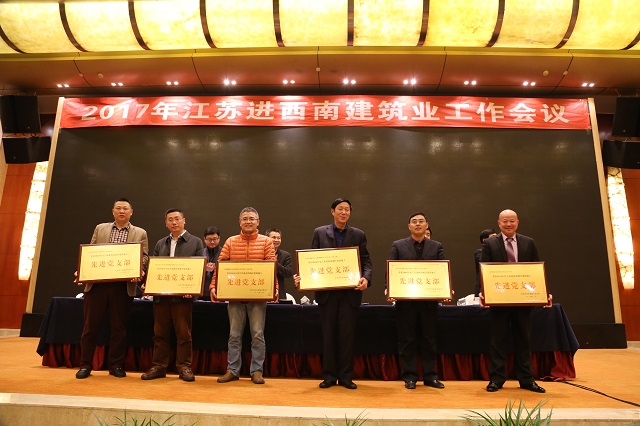 在江苏商会组织召开江苏出省建筑业企业西南地区党委会会议。江苏省建筑工程管理局副局长陈晨、江苏省住建厅建筑市场监管处处长范信芳、江苏省住建厅质监站站长曹春光、重庆市住建委建管处处长夏太风、重庆市住建委行政审批中心主任吴广等参加会议。会上,重庆分公司党支部被江苏省住建厅表彰为“2016年度江苏进西南地区建筑施工先进党支部”,田大浪、杜国圣同志被评为“2016年度江苏出省施工优秀党务工作者”。