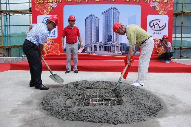 横琴隆义广场实现主体结构全面封顶 时间:2017-08-18 3264 2017年8月18日,第五项目部承担施工任务的横琴隆义广场项目举行主体结构封顶仪式。珠海横琴隆义国际投资有限公司董事长马国义,珠海公司党委书记缪国枢、总工程师周学军、总会计师冯喜平及设计单位、参建单位、监理单位等50余人共同见证这一喜悦时刻。 该工程自开工筹备以来即被列为我公司重点创优项目,截止目前已获评珠海市安全文明示范工地;通过广东省安全文明示范工地初评;通过全国绿色施工示范工地过程验收。较好地展现了我公司的综合实力及企业形象。