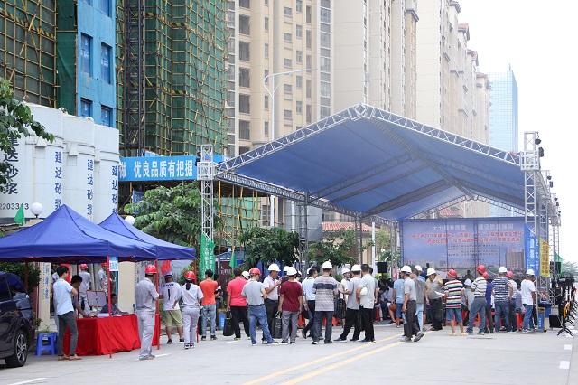 继“2017年阳江市建筑工程安全生产文明施工示范工地现场观摩会”之后,9月6日,阳江市“2017年建筑施工质量月和工程质量安全提升活动启动仪式暨现场观摩交流会”再次在我公司总包承建的阳光马德里项目现场隆重举行。阳江市住房规划建设局分管质量安全副局长张牛、市质安监站站长林子欢、市建筑协会会长梁荣照,市建管科、质安监站全体人员,各县(市、区)住房规划建设局分管质量安全副局长、建管股股长、质监站站长,市直各施工企业和监理企业分管工程质量领导、质安部门负责人,市区在建工程建设单位代表,施工单位项目经理、质量员,监理单位项目总监和专业监理工程师,各县(市、区)在建重点项目建设单位代表、施工单位项目经理、监理单位项目总监等400余人参加大会并观摩阳光马德里二期56-61栋施工现场。