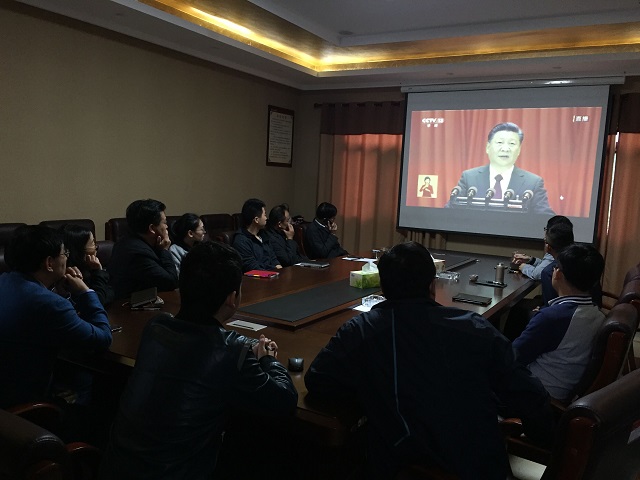 珠海区域公司组织党员干部职工收看十九大直播 时间:2017-10-18 2931 2017年10月18日上午9点,中国共产党第十九次全国代表大会在北京隆重开幕,江苏华建珠海分公司、重庆分公司分别组织公司机关全体党员干部职工集体收看十九大直播。 部分出差在外的员工也积极争取时间用手机等移动设备收看收听大会报告。同时,区域公司所有项目部也通过电子显示屏、悬挂条幅等方式热烈祝贺党的十九大胜利召开。