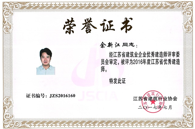 公司1位同志被授予“江苏省优秀建造师”荣誉称号 时间:2017-12-12 3765 日前,江苏省建筑行业协会下发了《关于2016年度江苏省建筑业优秀建造师的决定》,公司余新江同志位列榜单,荣获表彰,被授予“江苏省优秀建造师”荣誉称号。