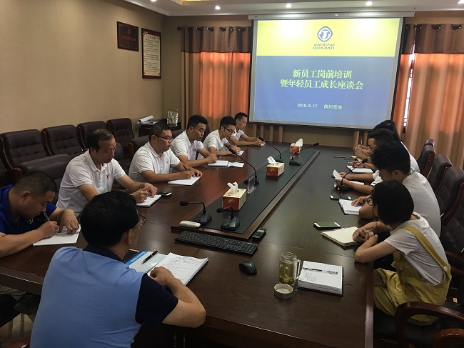 8月17日下午,重庆分公司在岳池会议室召开新员工岗前培训暨年轻员工成长座谈会,公司经营层和在岳年轻员工共14人参加了会议,会议由严正涛总经理主持。